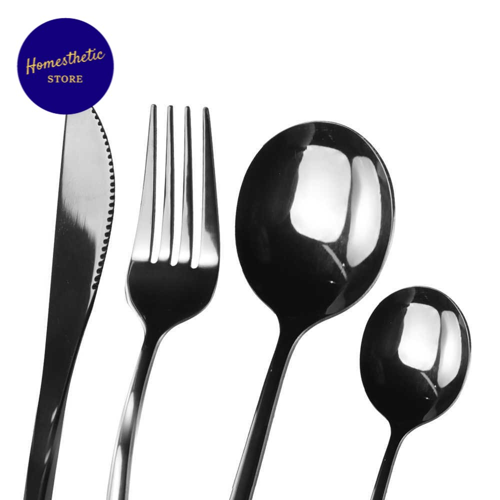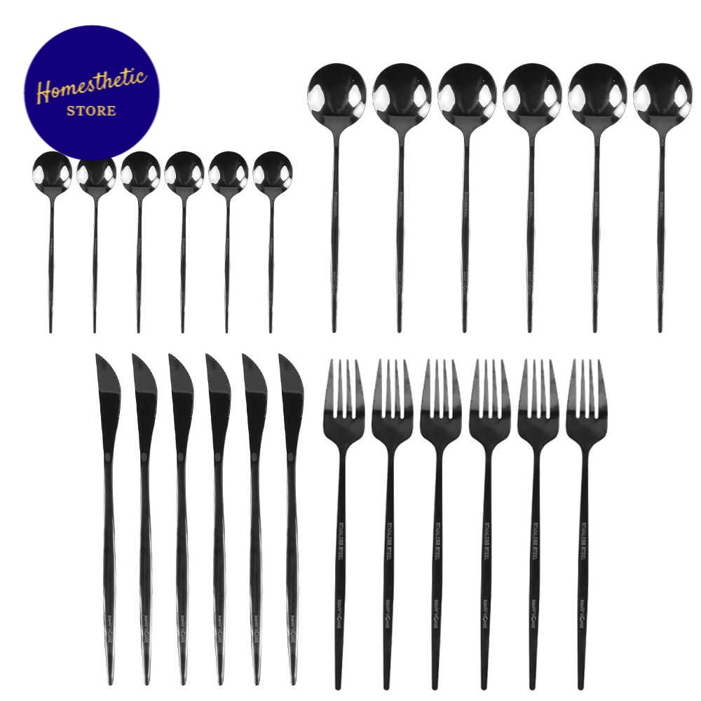 Royal Cutlery Set Perlengkapan Alat Makan Sendok Garpu Set Korea Luxury Mewah 24 PCS Set Sendok Sultan Stainless Steel Warna Hitam Putih G0.LD