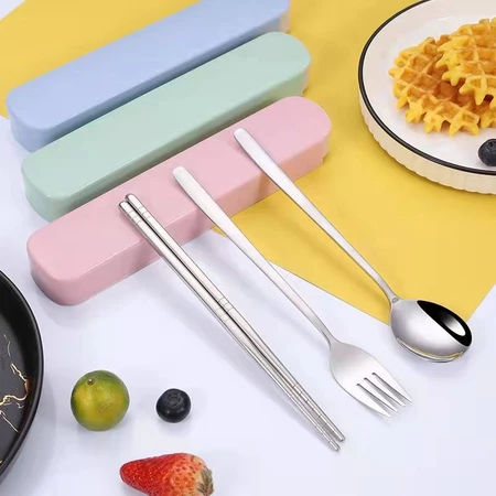 Alat Makan Sendok Garpu Sumpit Stainless Korea Set Portable Travel Box Peralatan Makan Souvenir