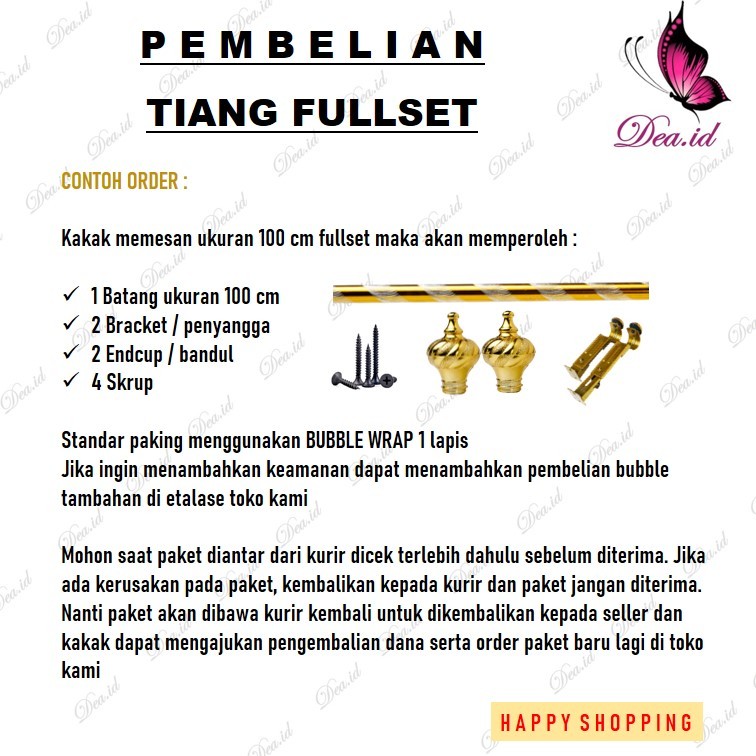 Gorden Eropa Princess 50 200 Cm New Batang Gorden Fullset Tiang Premium Bracket Eropa Princes