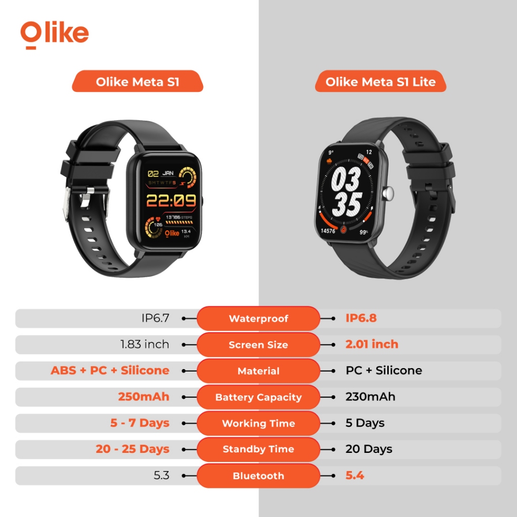 [BEST SELLING ]OLIKE Smartwatch META S1 Lite Battery Up to 20 Day IP68 Bluetooth Call 100+ Sport