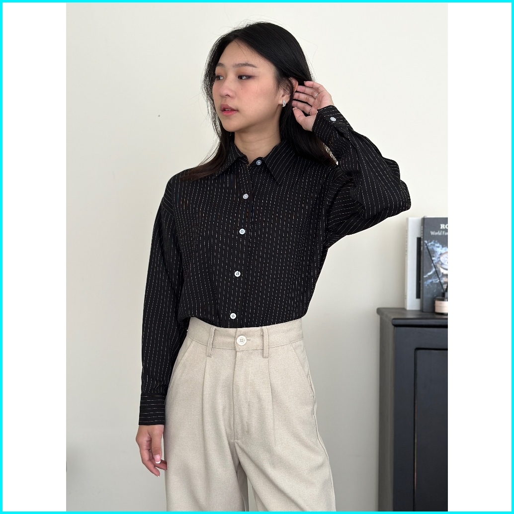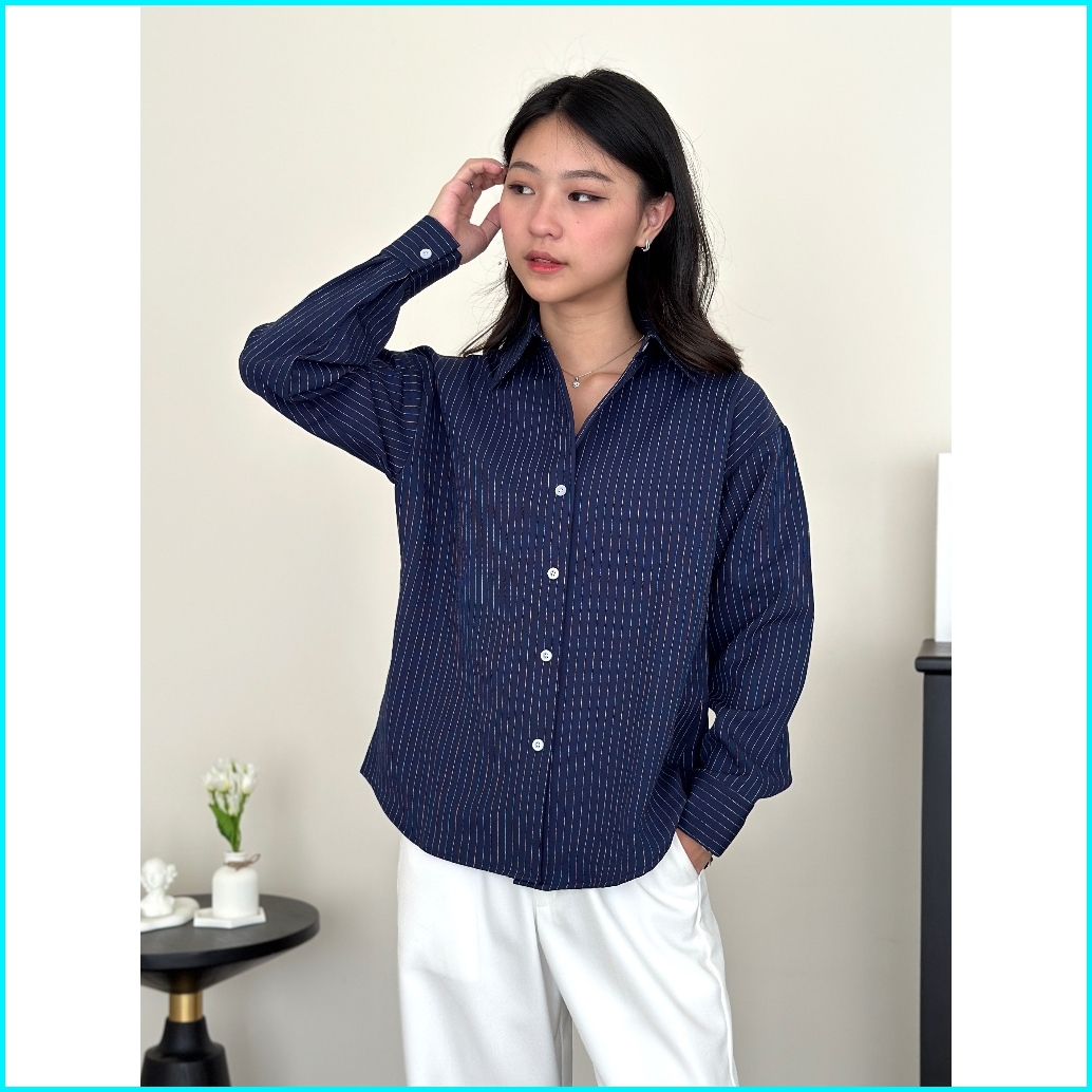 Asoka Kathy Shirt 880 - Women Striped Collar Shirt Long Sleeve - Atasan Kemeja Wanita Flowly