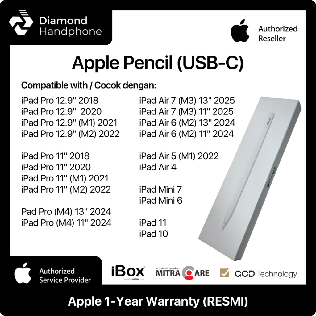 Apple Pencil USB C 2023 iPad Pro iPad Air iPad Mini M4 M2 M1 Garansi Resmi
