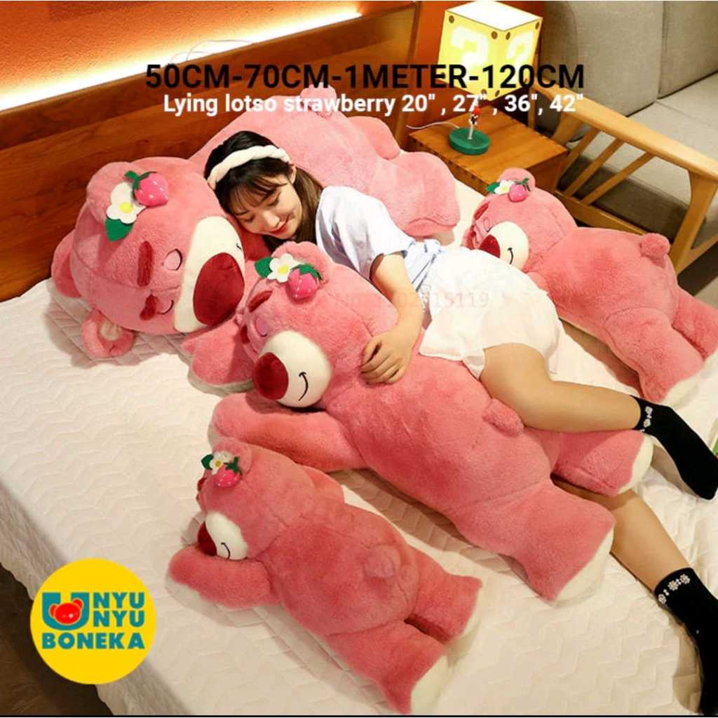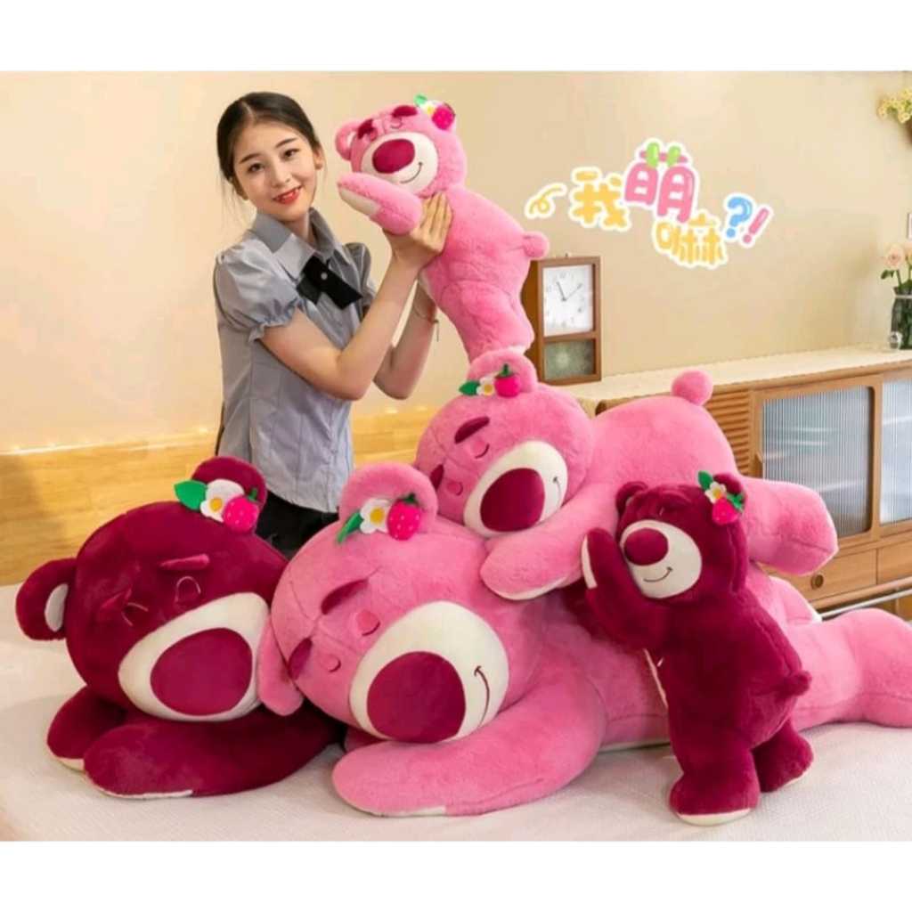 Boneka New Bear Lotso Lying Stawberry Toy Ber Ukuran Jumbo 70 cm Mainan Mewah
