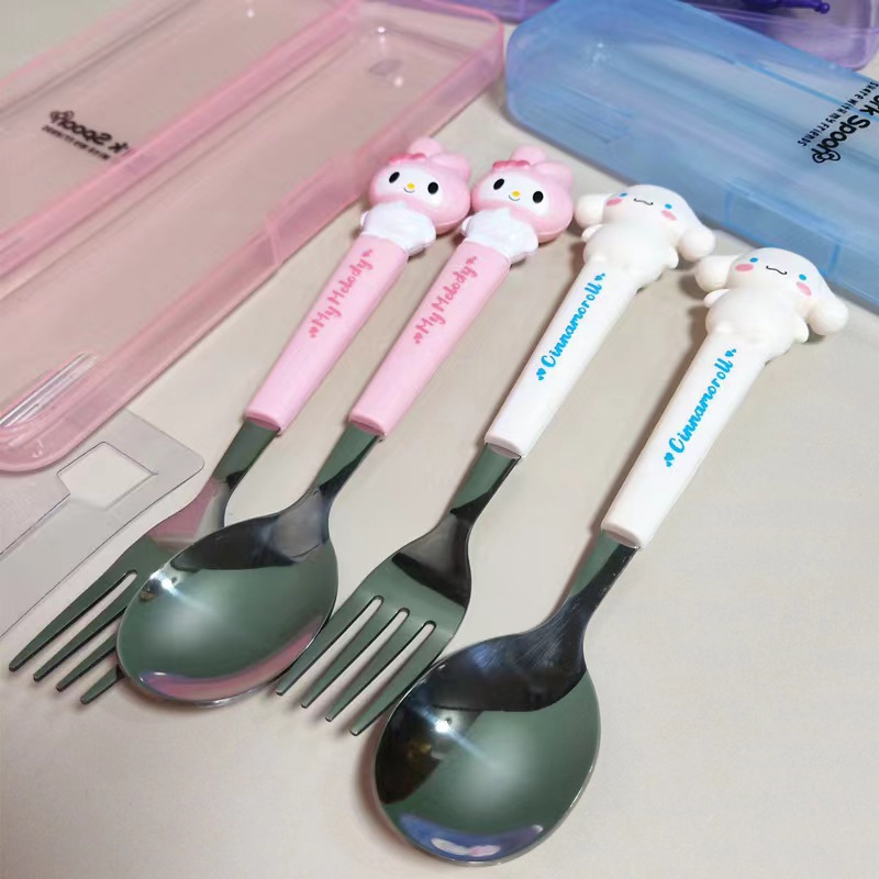 Set Sendok Garpu Karakter/ Kuromi Cinnamoroll Melody Pompurin/Terbaru Alat Makan Sendok Garpu