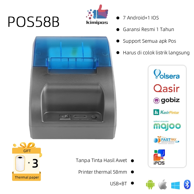 Printer Kasirppob Thermal 58mm Usbbluetooth Garansi Support Cash Drawer Printer Thermal 58mm 3roll Kertas