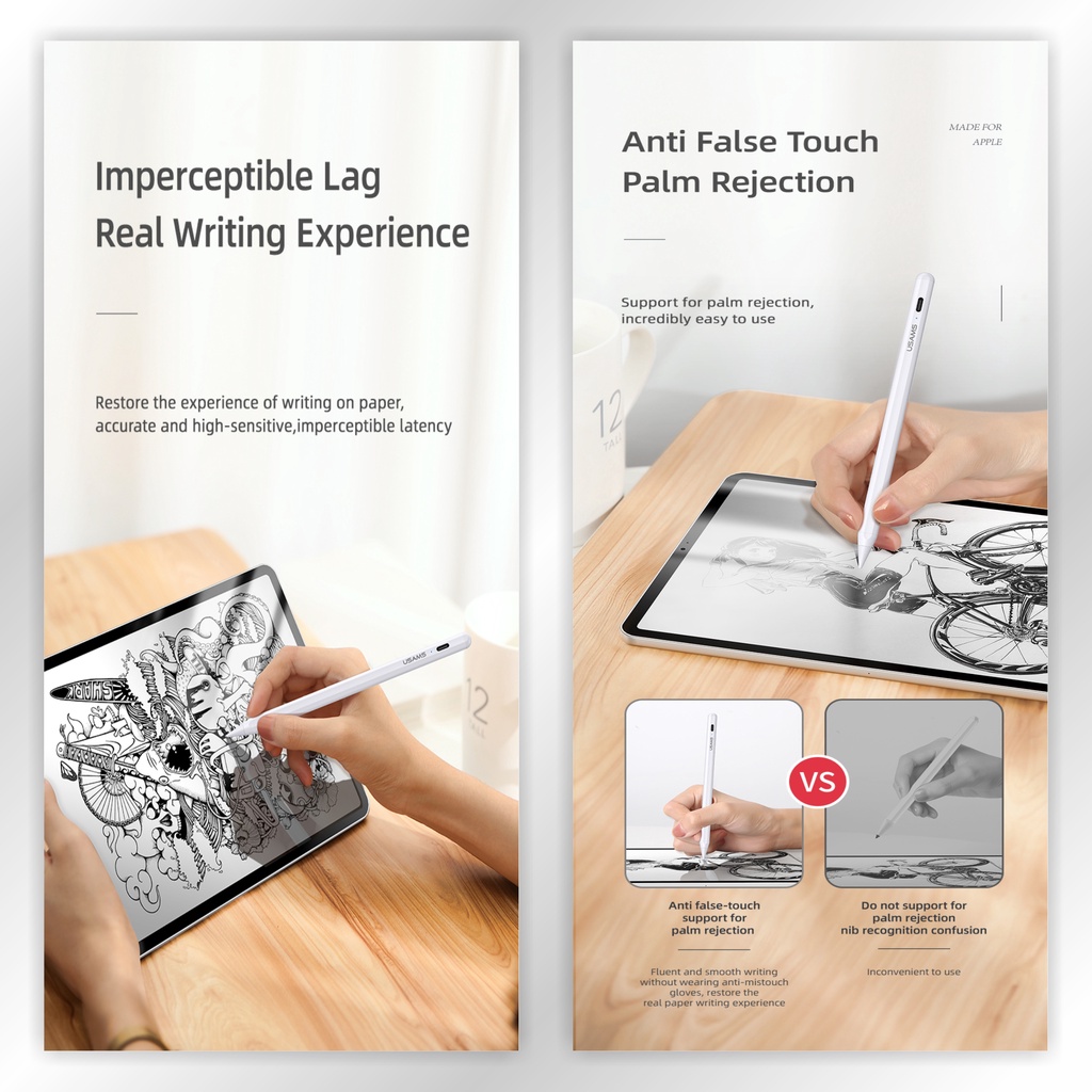 USAMS ZB223 Tilt-Sensitive Active Touch Screen Capacitive Stylus Pen for iPad