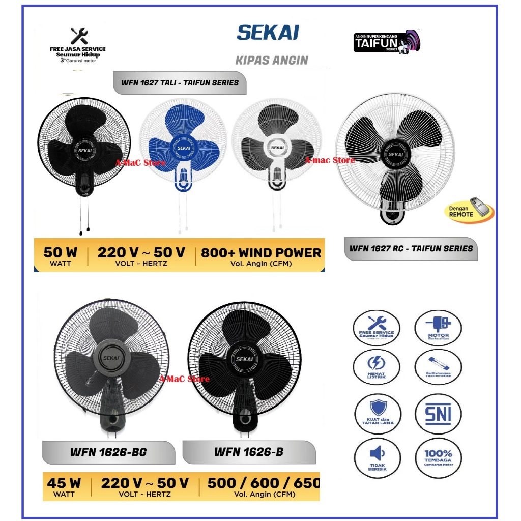 Kipas Angin Sekai Kipas Dinding 16 Inch Wfn1626 Wfn1627 Kuat Dan Tahan Lama