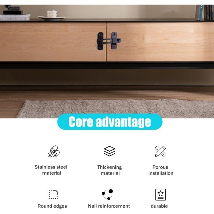 Grendel Kunci Pintu Minimalis Model Geser Lurus / Daun Kait 90 Drajat Latch Bahan Stainless Steel