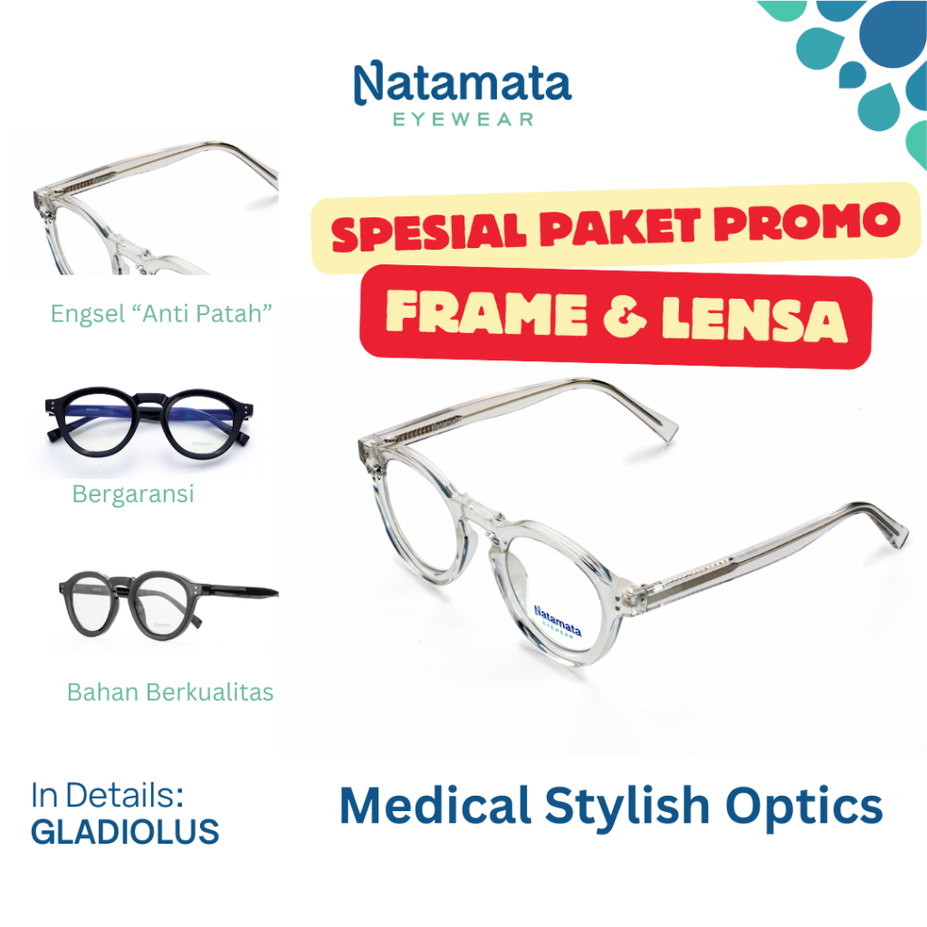 Natamata Fashion: Frame Gladiolus Putih Bening Transparan - Kacamata Bulat Pria/Wanita - Anti Radiasi/Photochromic/Bluec