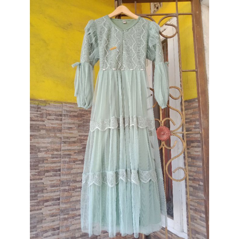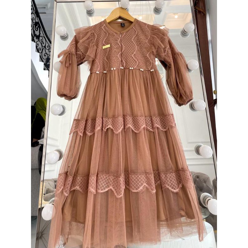 Gamis Pesta Anak Hasya Mutiara Brukat Mix Tile Dress Elegan