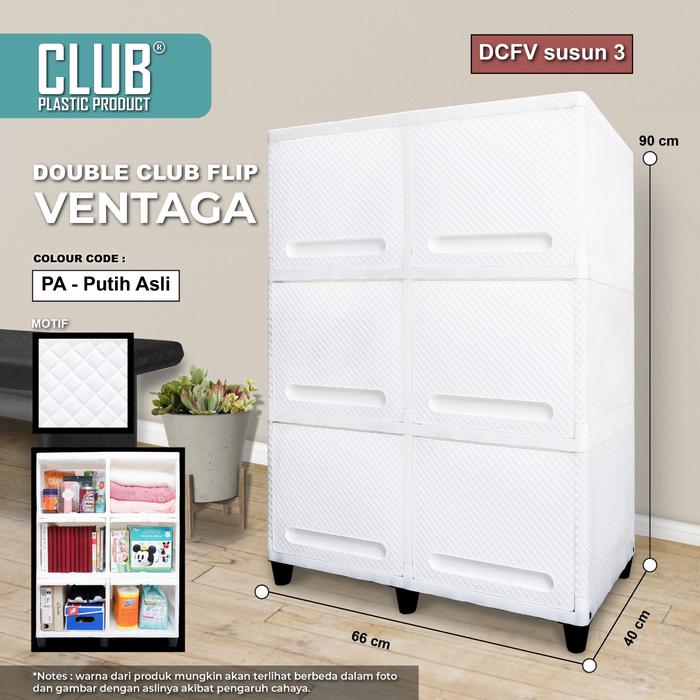 Double Club Flip Susun 3 - Lemari Plastik - Pintu Geser - Laci Minimalis - Penyimpanan Serbaguna - Cabinet Pakaian - Kab