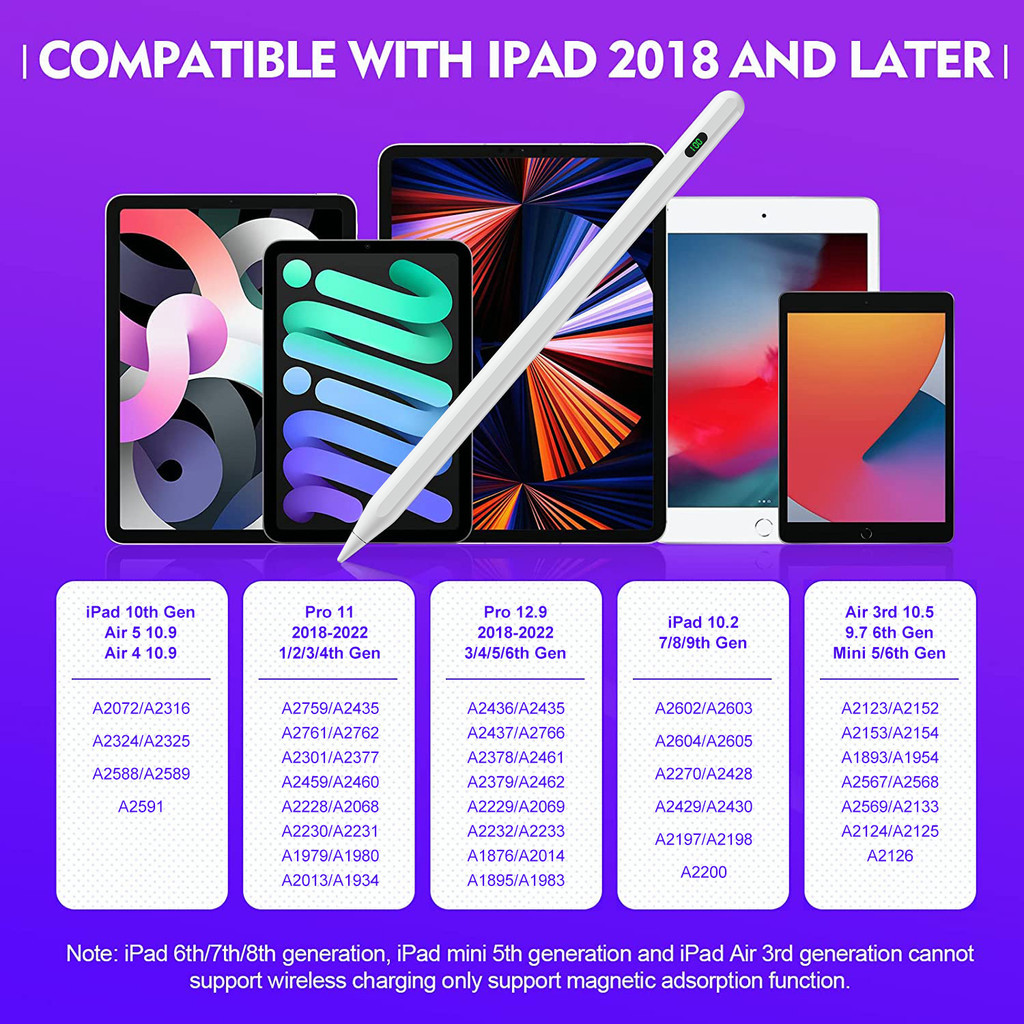 stylus Pen CD3276 for ipad Pencil 2 1 iPad stylus Pen with Digital Power Display, Palm Rejection Tilt Sensitive Stylus P