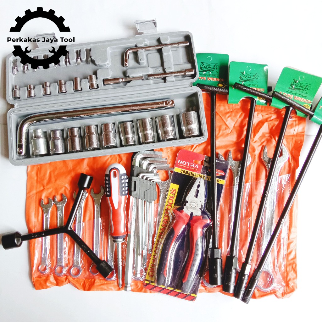 Paket Kunci Ring Pas Set Dengan Kunci Sock Dua Puluh Tujuh Pcs Kunci L Kunci Y Kunci T Obeng Dan Tang Kombinasi
