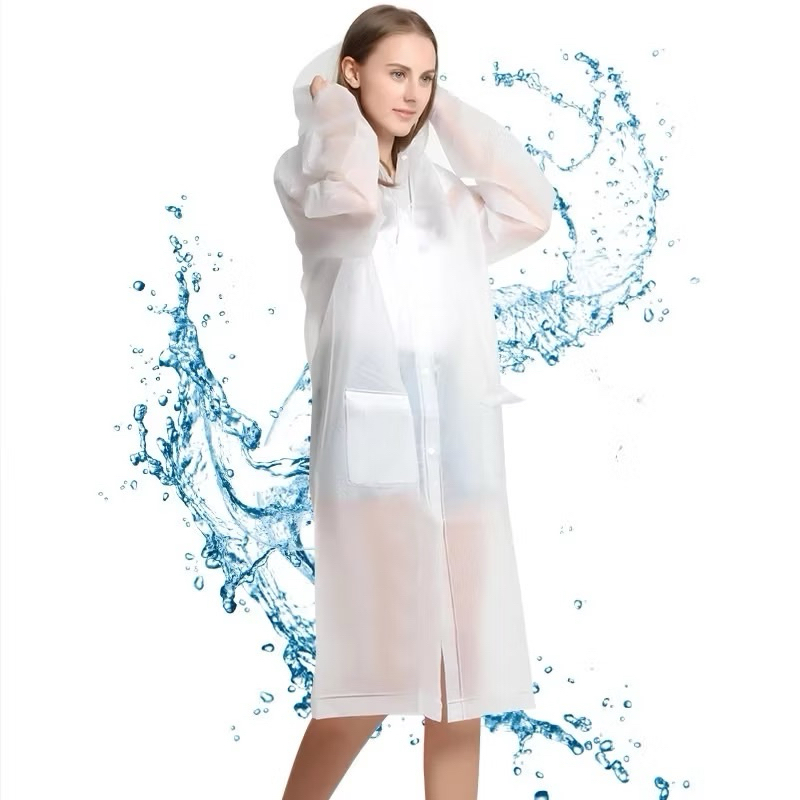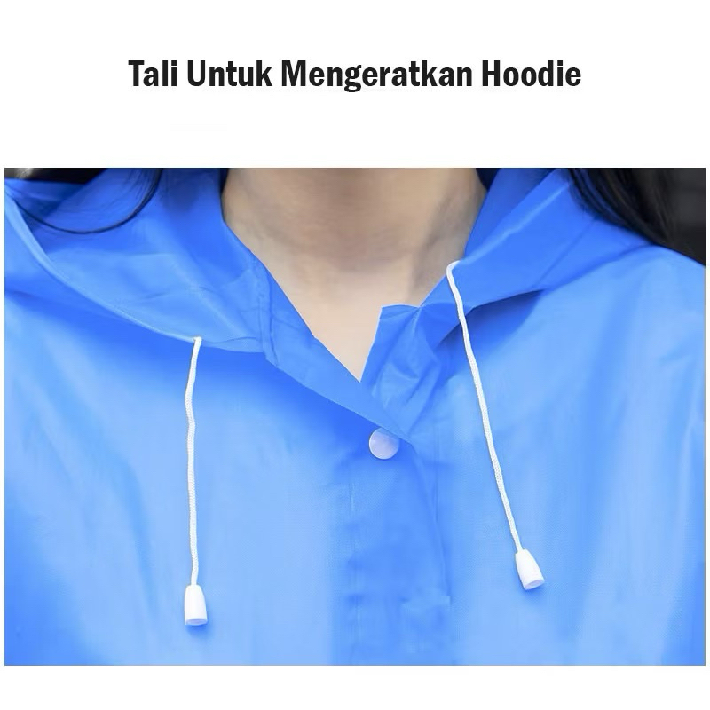 Jas Hujan Eva Hoodie Terusan Jas Hijab Tebal Ponco Dress Raincoat Lengan Panjang Model Jubah