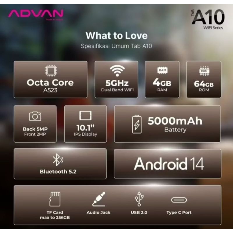 ADVAN TAB A10 WIFI ONLY + FREE CASE | PROC OCTACORE 10 INCH | 4GB/64GB | TABLET