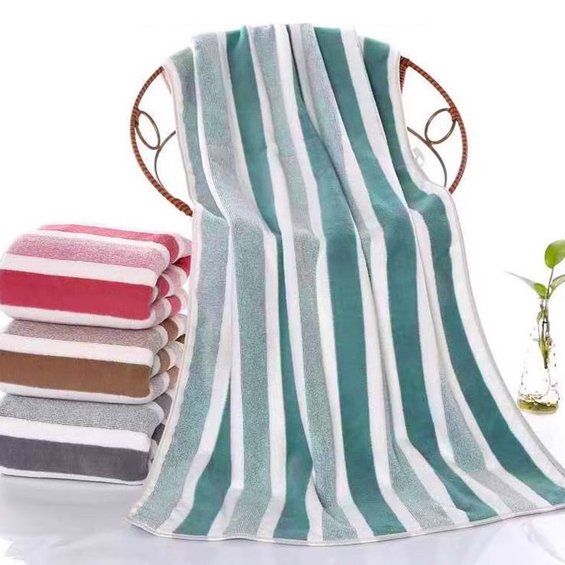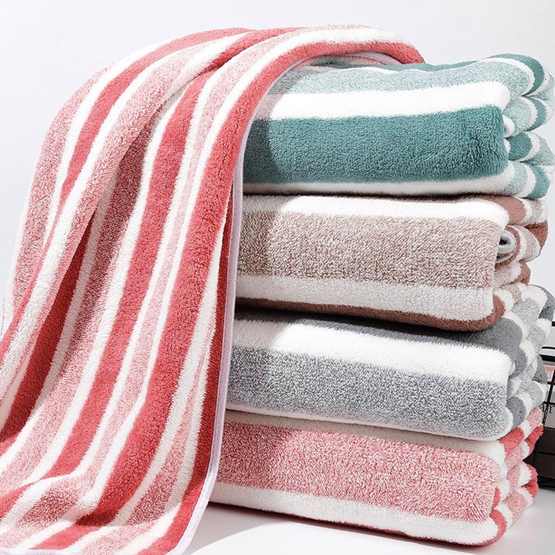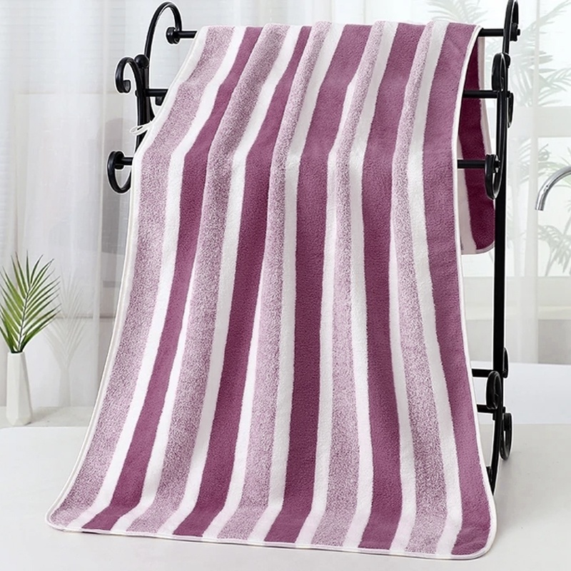 Handuk Mandi Dewasa Microfiber 70X140Cm Salur Lembut Bulu Halus Super Serap Air High Quality