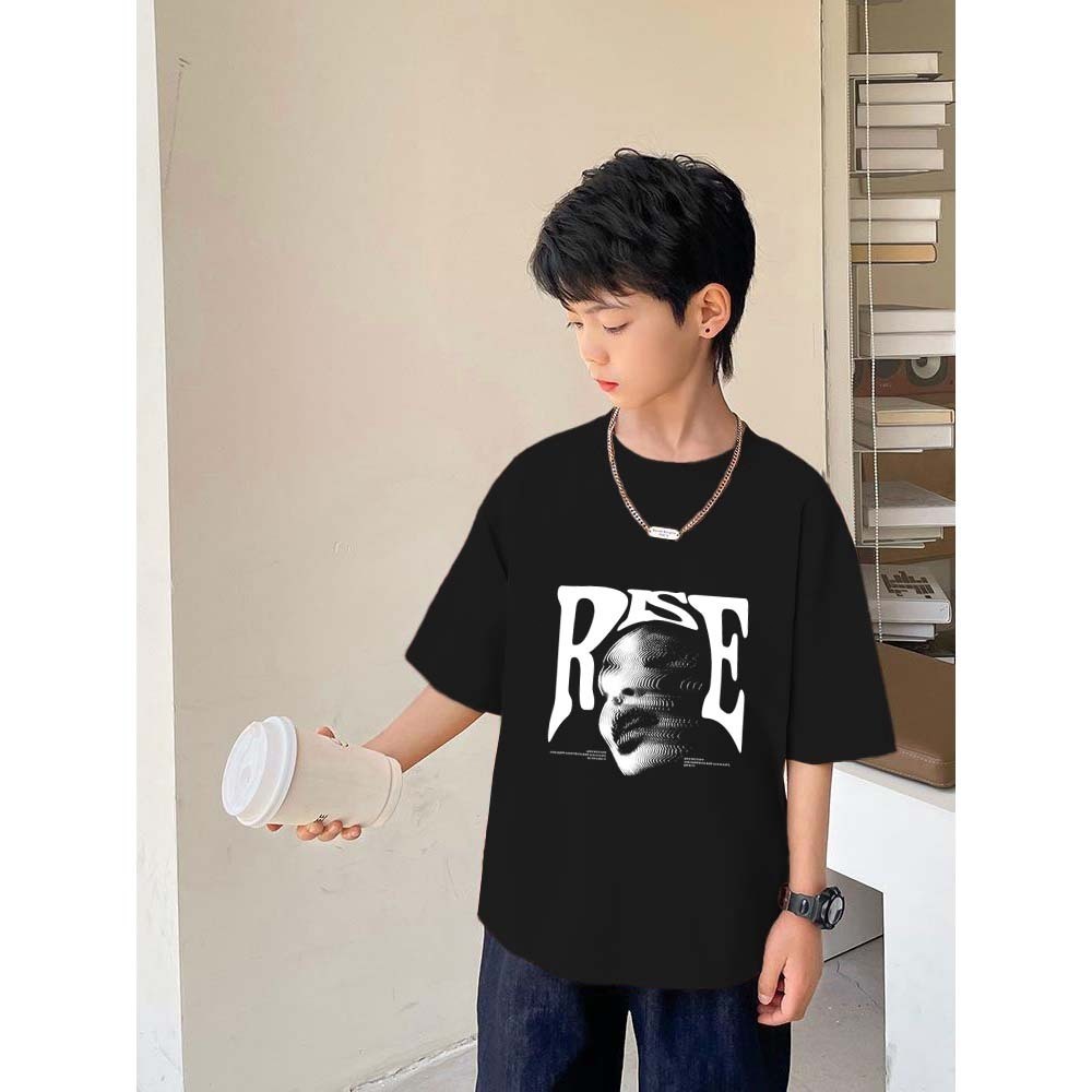 【✅24 jam siap kirim】Kaos anak pria|2-12 Tahun|Cetak Korea|korea style premium baju atasan|Anak pria 10 tahun import top|Kaos anak RISE motif retro Amerika|Kaos anak|Hitam cocobaby t shirt cotton |7.28