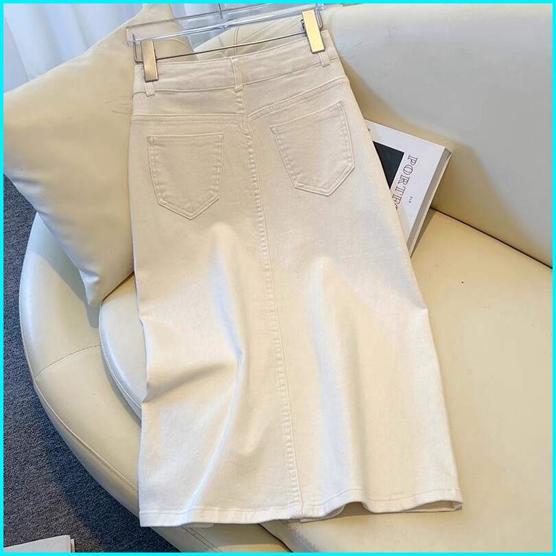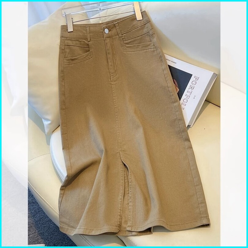 Elegan.girl Jeans Rok Wanita Pink Highwaist Rok Midi A-line Denim Split Pakaian Wanita Terbaru Rok Jeans Warna Gaya Kore