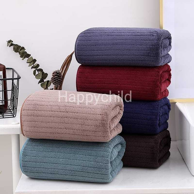 Handuk Mandi Bulu Salur Lembut 70X140Cm Handuk Dewasa Towel Premium Menyerap Air
