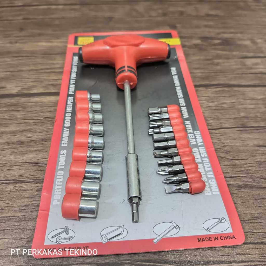 Paket Murah Kunci Shock Sock Set Empat Puluh Pcs Dengan Ring Pas Obeng T Palu Dan Plus Minus