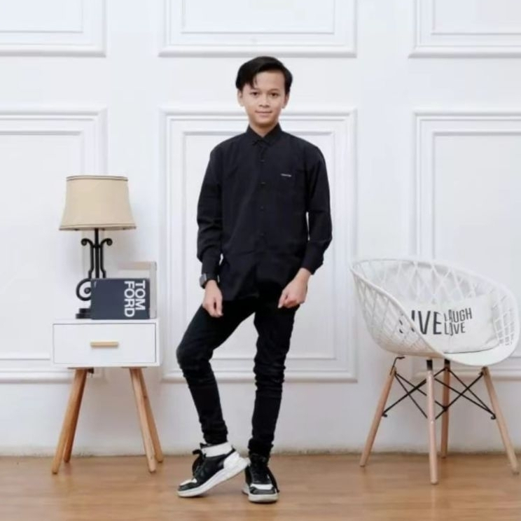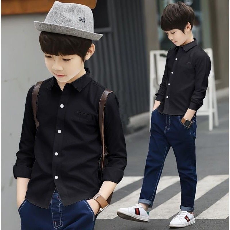 Kemeja Anak Lakilaki Lengan Panjang Polos Umur 114 Tahun Distro Kasual Bayi Cowok Warna Biru Mudah
