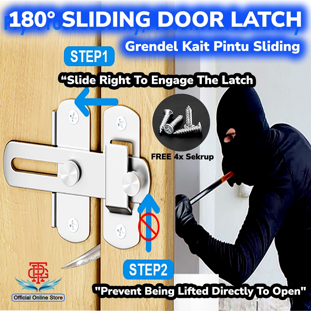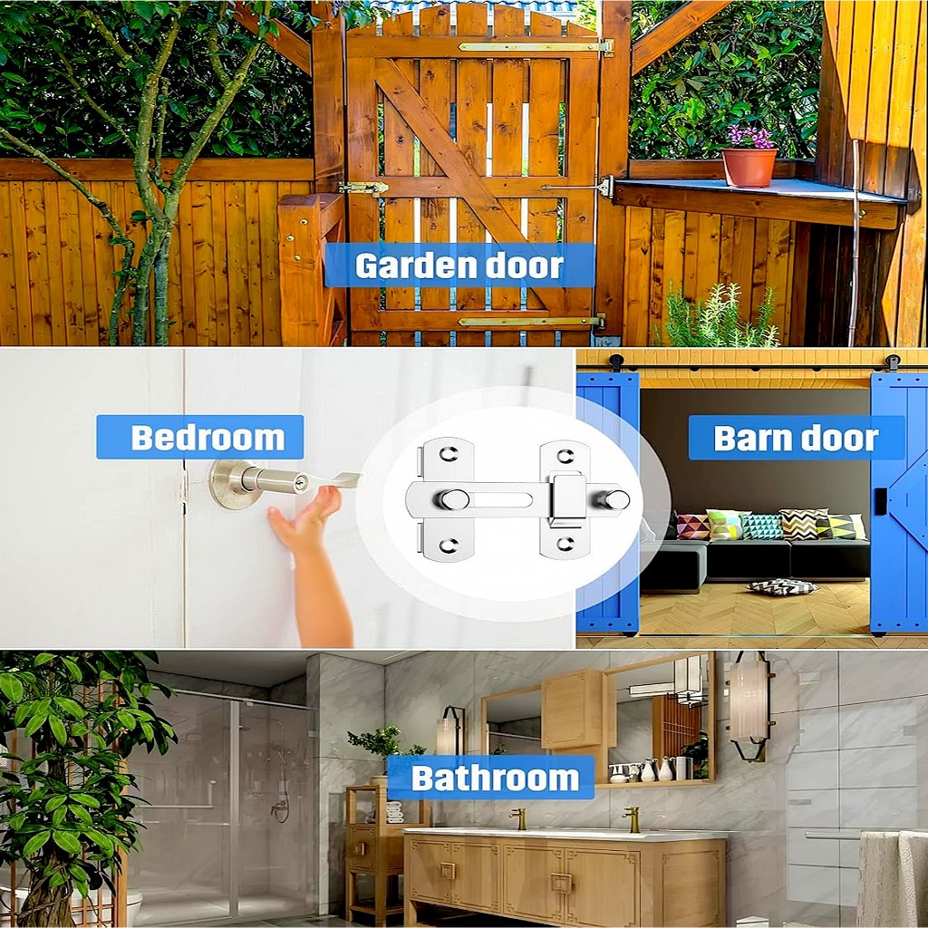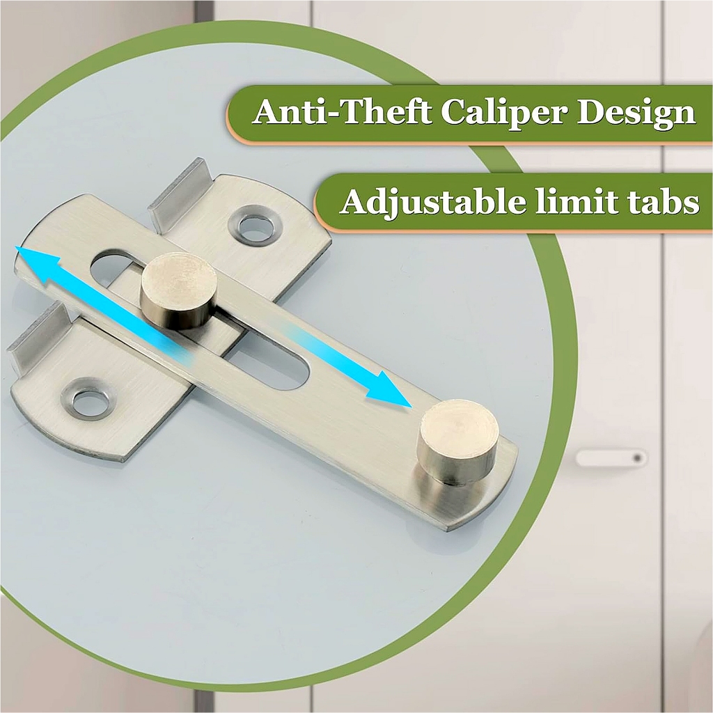 Grendel Kait Slot Selot Overpal Overval Gesper Kunci Gembok Pengait Geser Lurus Pintu Lemari Stainless SUS 304 180° Hing