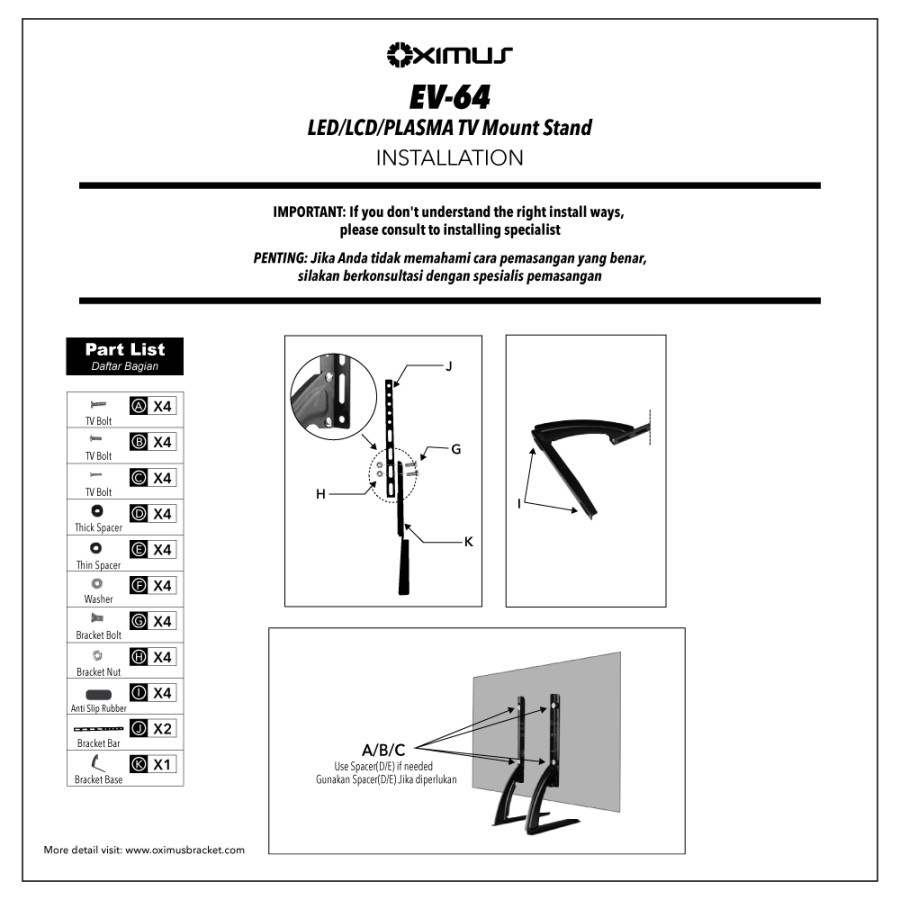 Bracket Tv Oximus Stand Kaki Monitor 2637 Inch