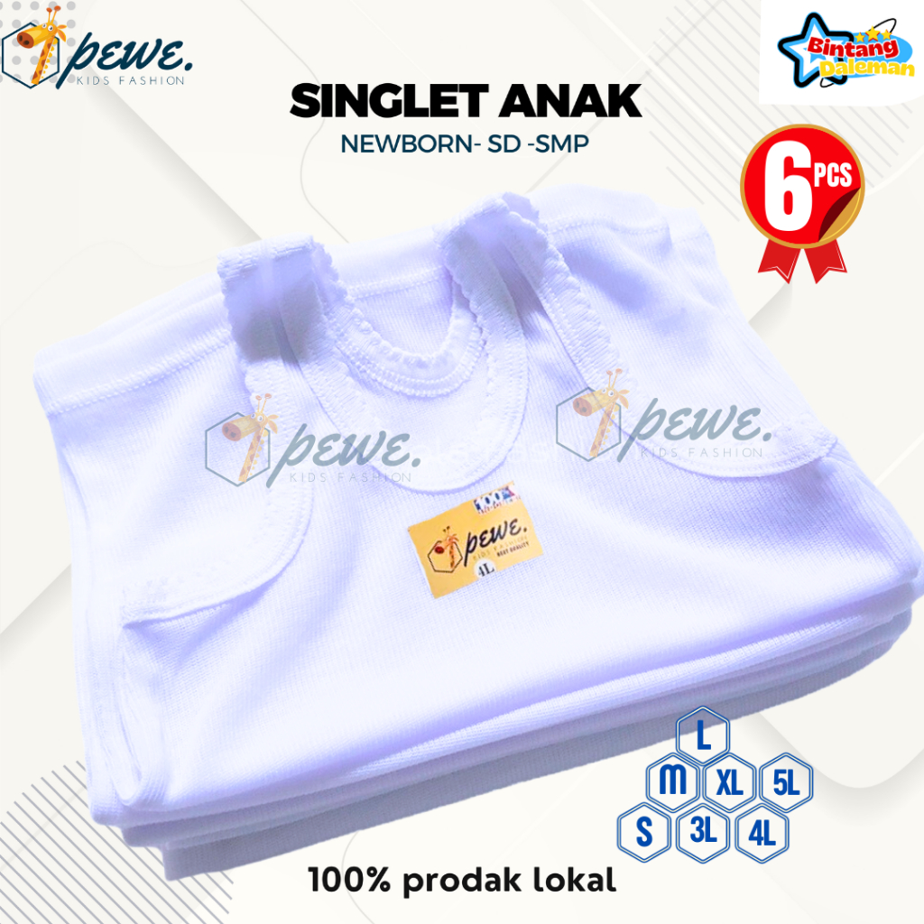6 Pcs Kaos Dalam anak warna putih - Kaos Dalem Anak perempuan dan laki laki Tanpa Bolong Bolong