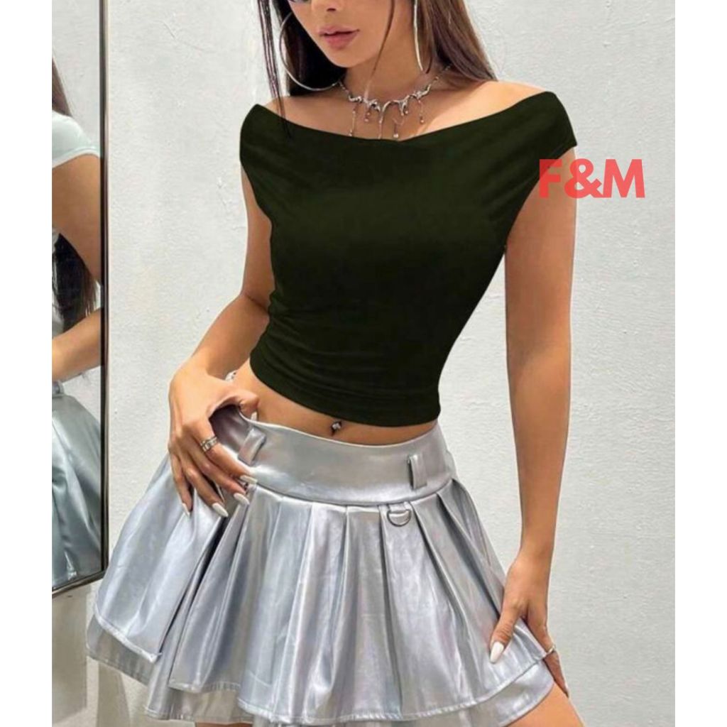 Atasan Crop Top Wanita Sabrina Fm-62 Bahan Spandek Stylish Kekinian Nyaman Modern