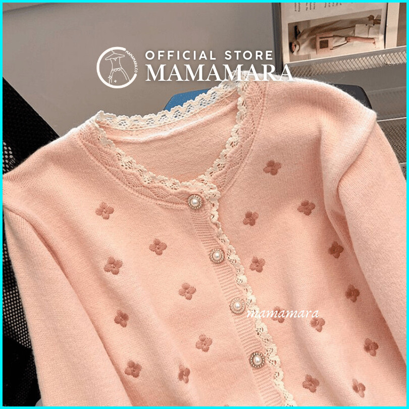 Mamamara - Cardigan Rajut Love Clover Imut Knitwear Casual Santai Nyaman