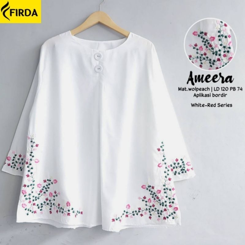 Kemeja Blouse katun wanita cantik Motif Bordir Bunga premium Atasan Putih halus lembut mewah Alysa