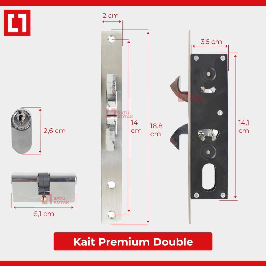 WELDOM Kunci Pintu Swing Sliding Aluminium 1 Set Kecil 5123/4123
