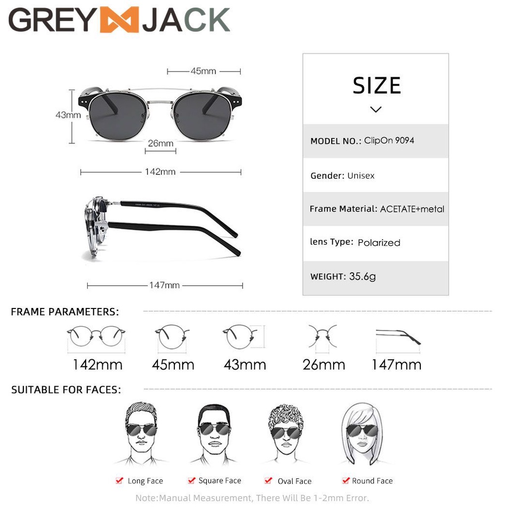 Grey Jack Frame Kacamata Clip On Retro Vintage Style Uni Bisa Minus Antiradiasi Blueray Photocromic Bluecromic 9094