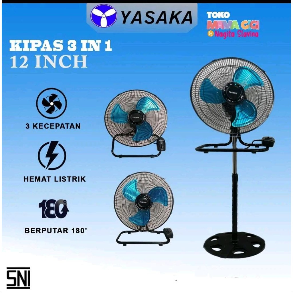 Kipas Angin Yasaka Kipas 3 In 1 Berdiri Dinding Meja Ukuran 18 Inch Kuat Dan Tahan Lama