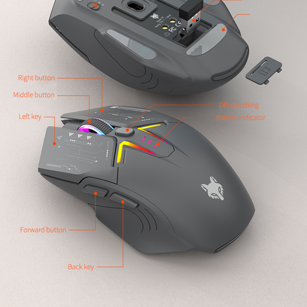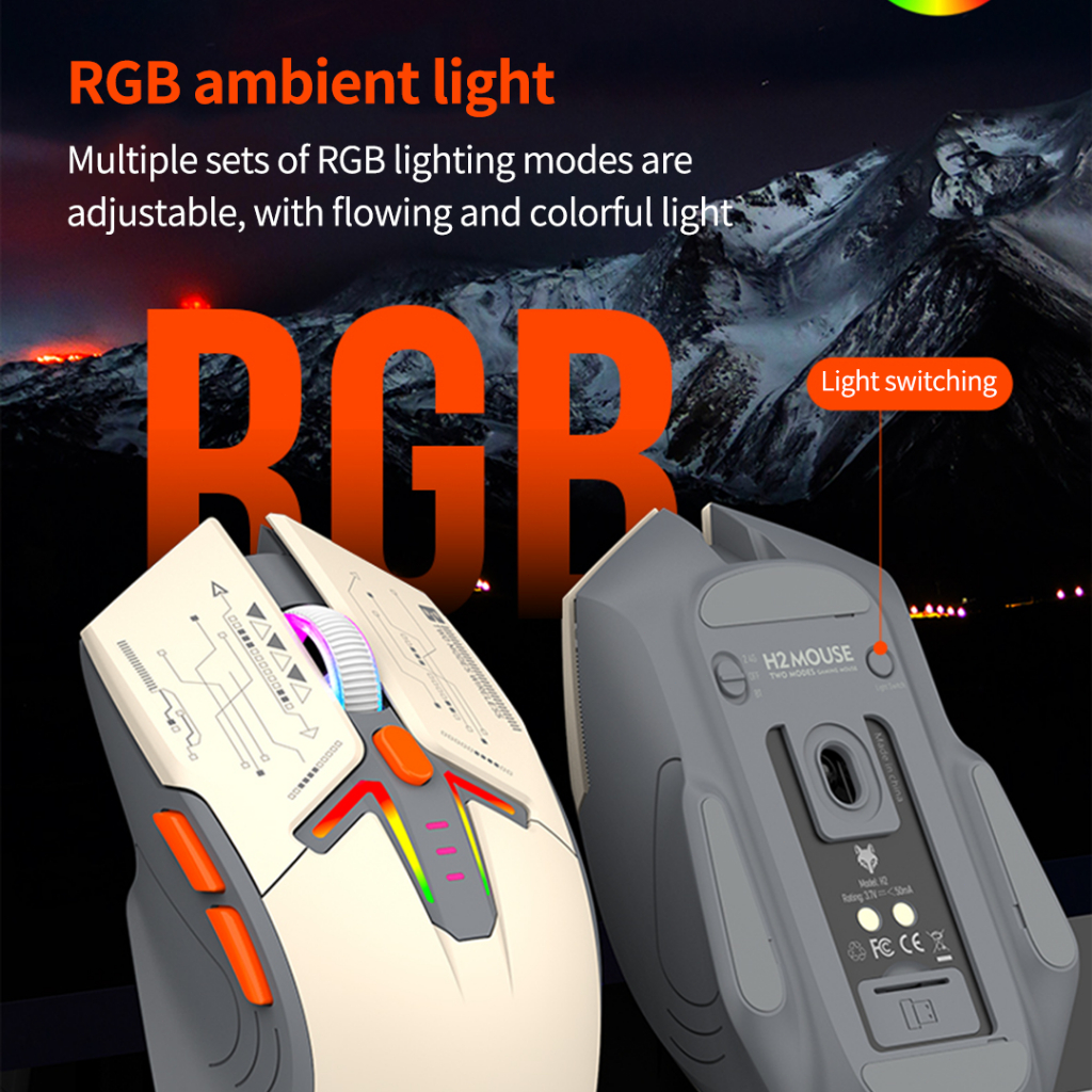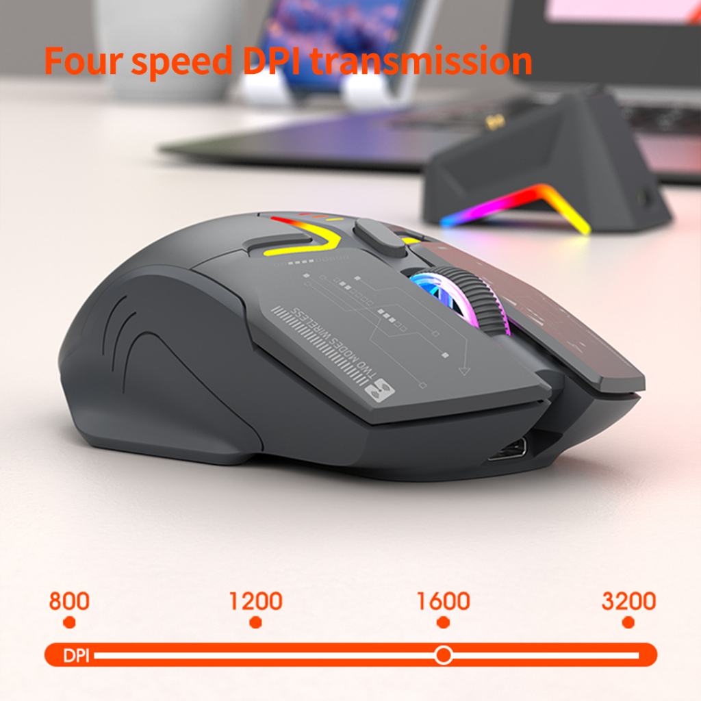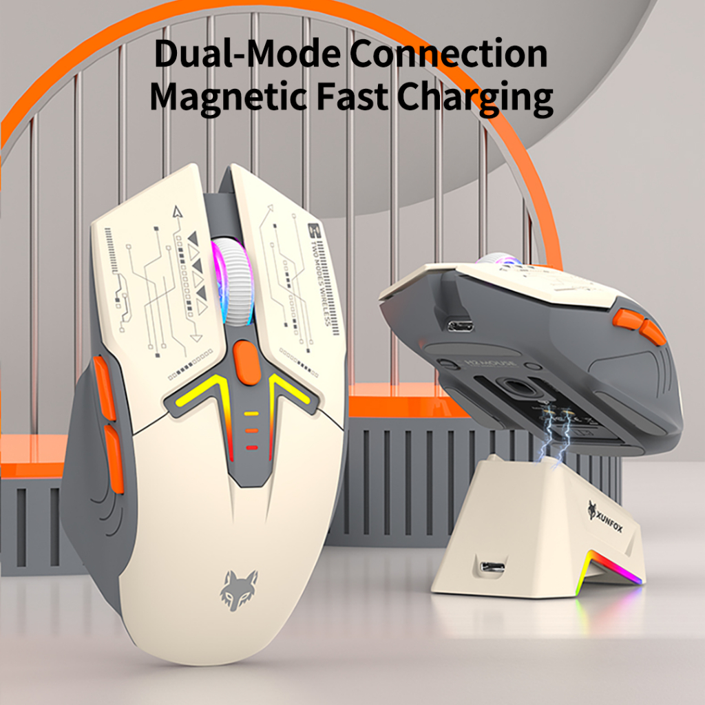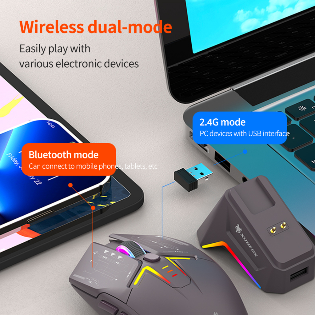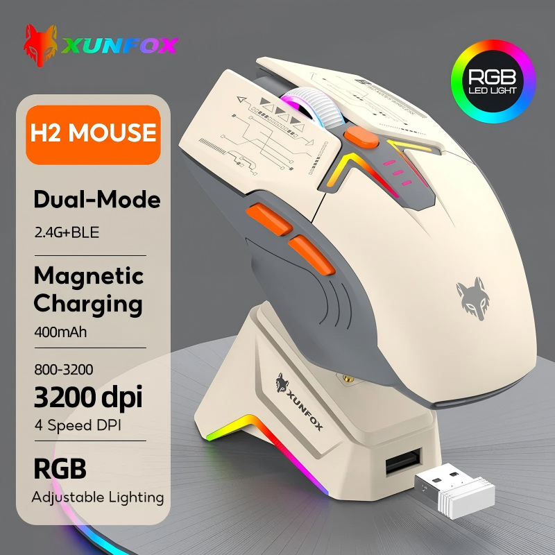 【Wireless Charging+RGB】XunFox H2 Mouse Gaming 3200 DPI Ergonomic - Mouse Bluetooth 5.0 & 2.4G Wireless, Charging Dock, untuk PC Laptop Kantor & Game