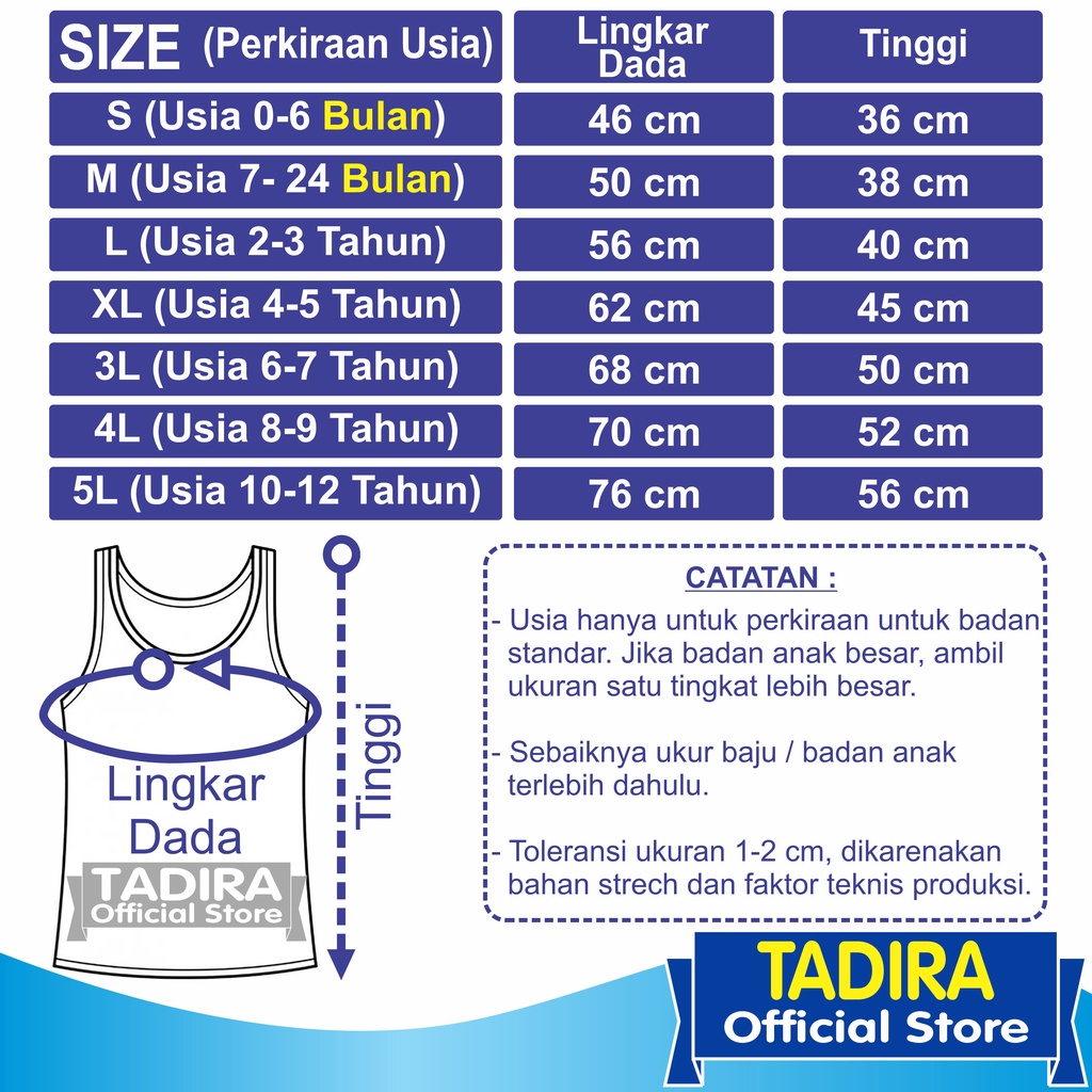 6 Pcs Singlet Anak Putih Tanpa Bolong Bolong Kaos Dalam Anak Laki Dan Perempuan TADIRA Store