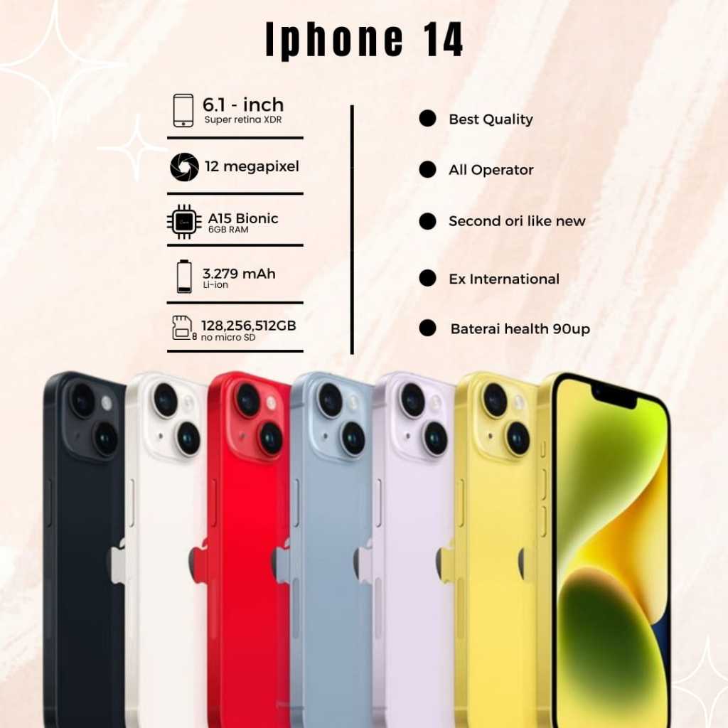 iPhone 14 second all operator indonesia 128GB/256GB/512GB MULUS NO MINUS