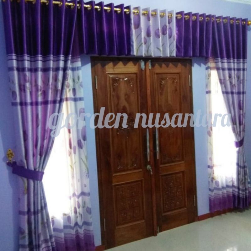 Gorden Paket 1 Set & Poni Motif Tulip Loster Atas Pintu Import