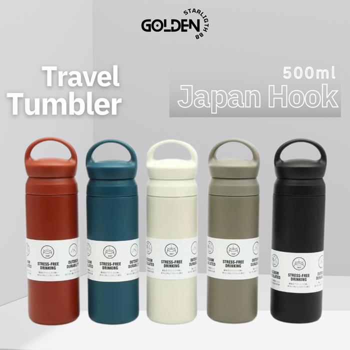 Termos tumbler travel japan hook 500ml murah dan bagus air panas air dingin stainless steel SUS 304 - HITAM