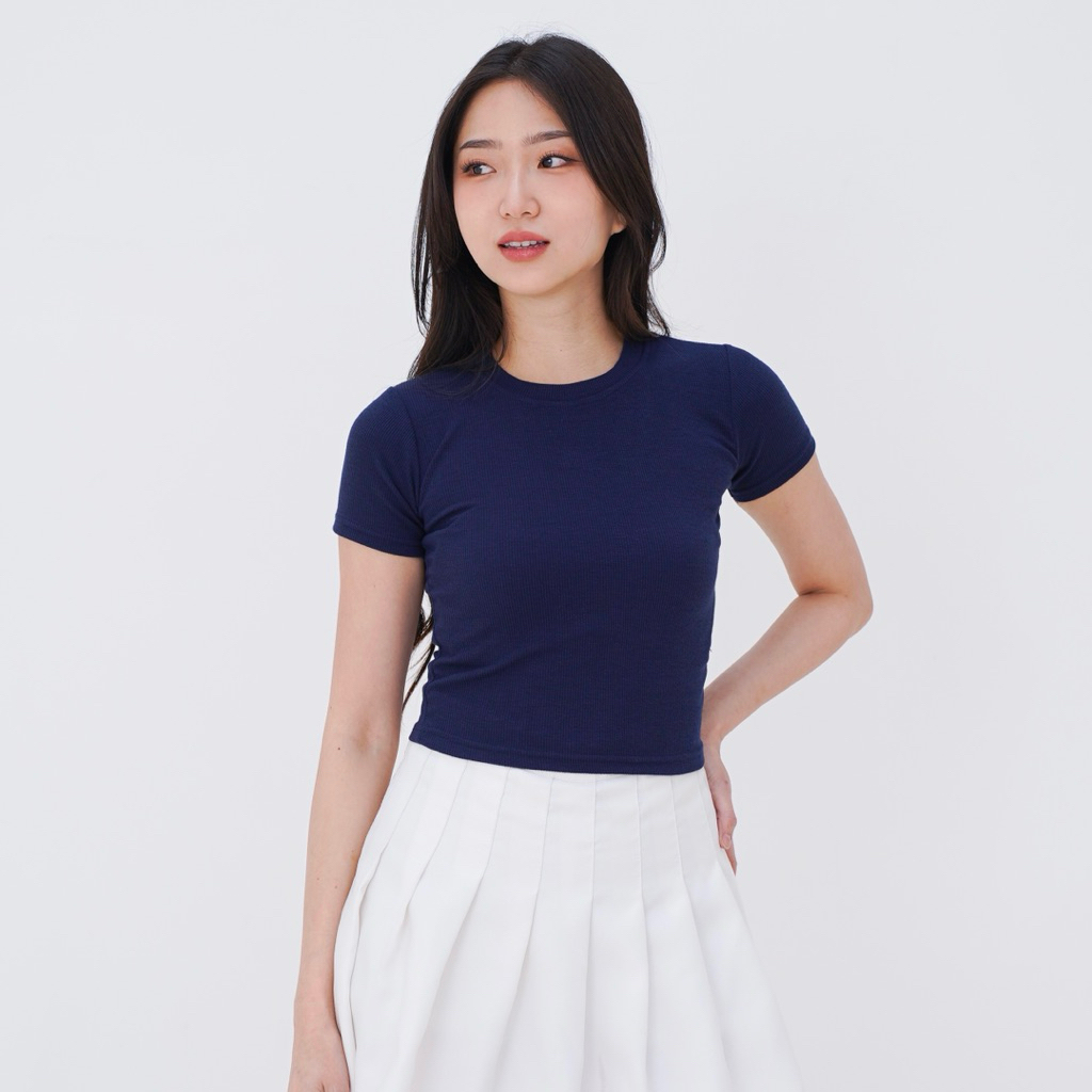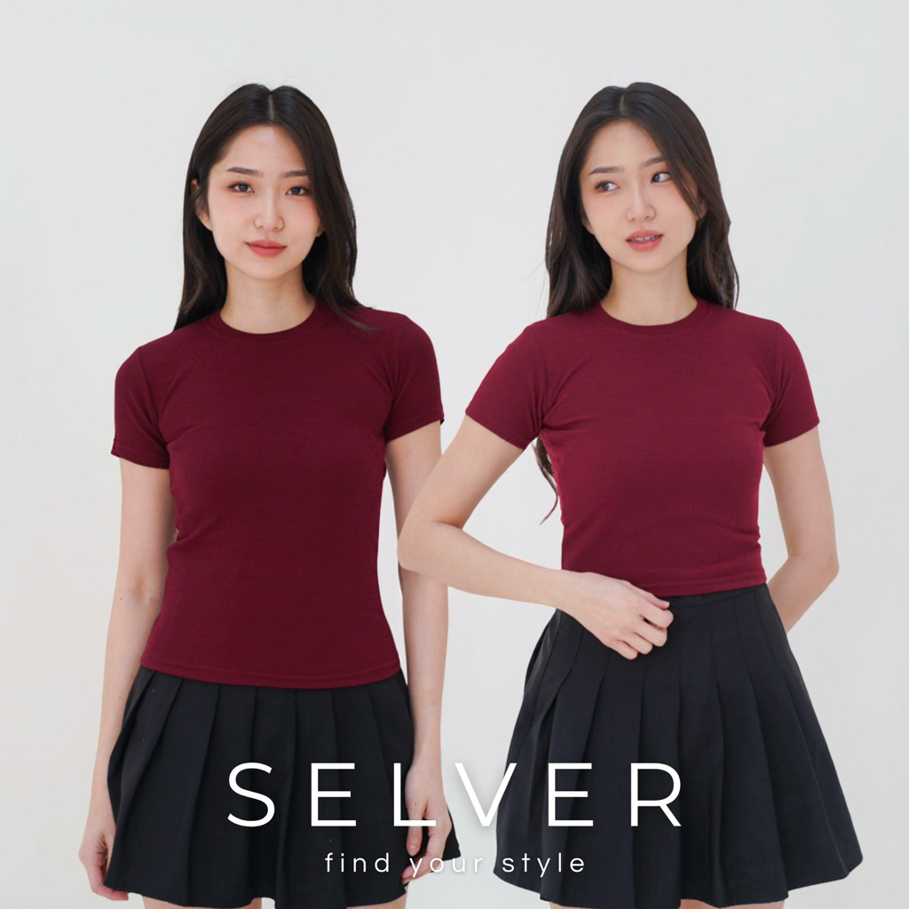 Kaos Crop Top Wanita Selver Polos Knit Slim Fit Lengan Pendek Premium Kekinian Modern