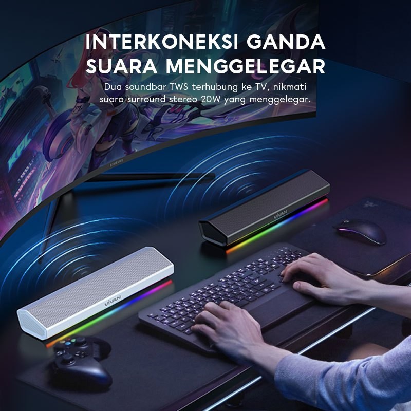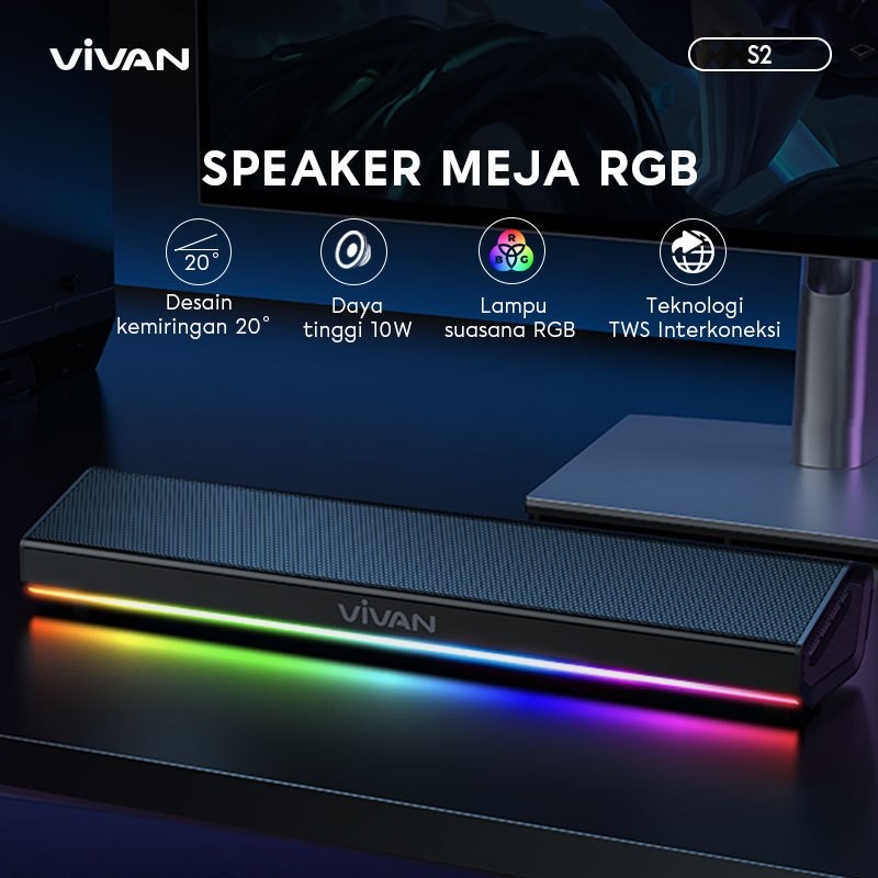 VIVAN Bluetooth Soundbar TV Super Bass RGB LED Lampu TWS Interkoneksi BT 5.4 S2 Garansi 12 Bulan