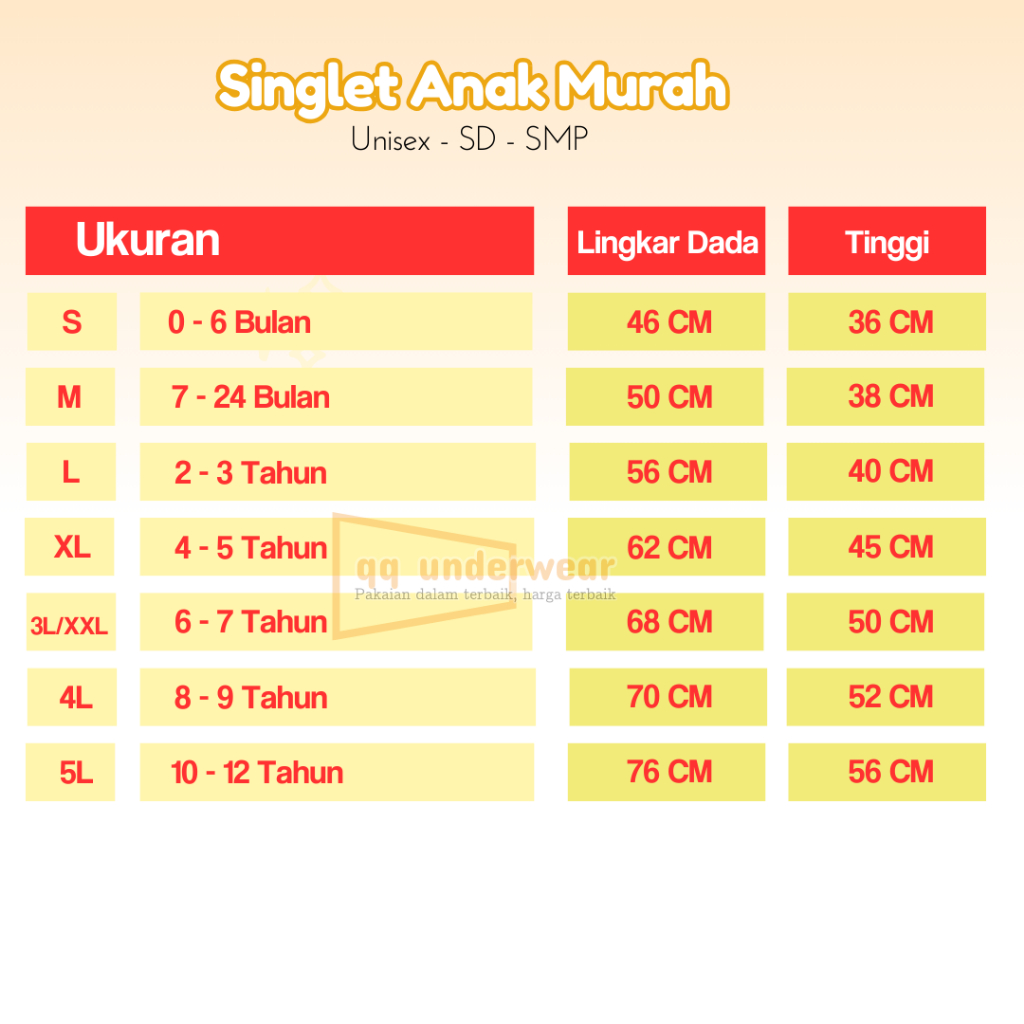 6 Pcs Singlet Anak Warna Putih Usia 0-12 Tahun Tanpa Bolong Kaos Dalam Anak Laki Dan Perempuan
