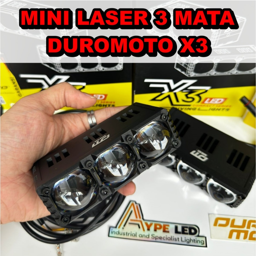 LAMPU TEMBAK MINI LASER X3 150 WATT DUROMOTO 3 MATA LAMPU SOROT GRILL DUROMOTO X3 ORIGINAL