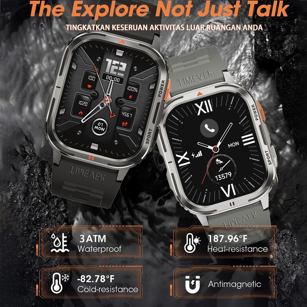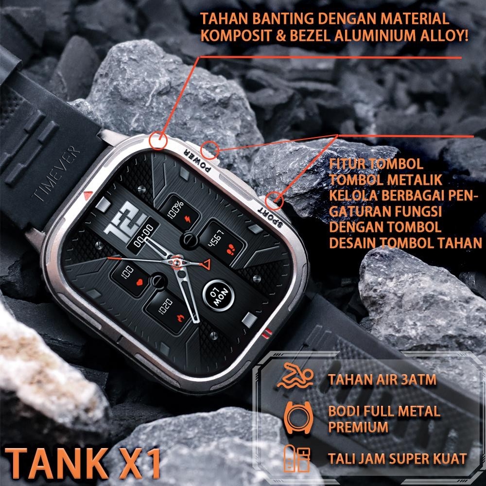 TIMEVER TANK X1 Al smartwatch bluetooth call 3ATM tahan air jam tangan wanita pna | jam tangan militer | fitness tracker Cerdas Berbasis Al timever
