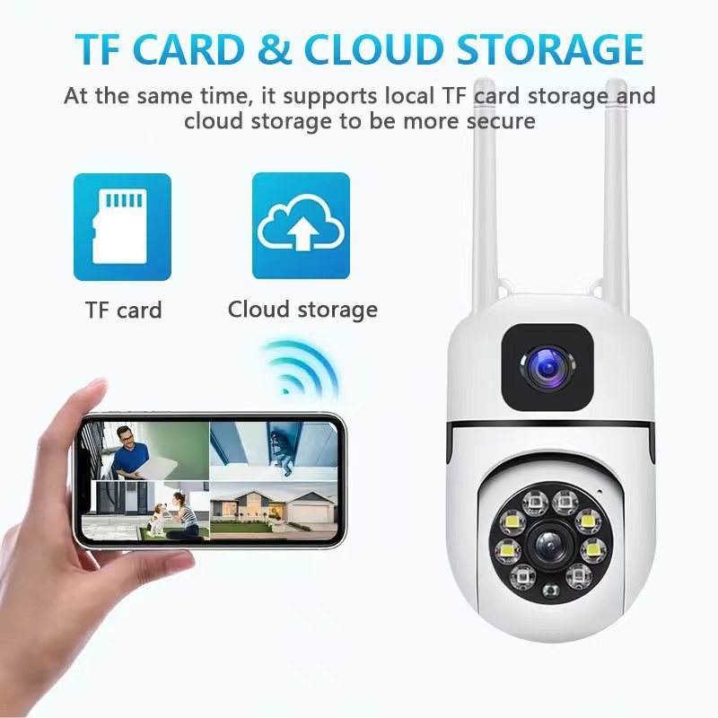 Cctv Dual Camera 8Mp Ip66 Tahan Air Konow V380 Pro Dengan Penglihatan Malam Inframerah Dan Pelacakan Bergerak