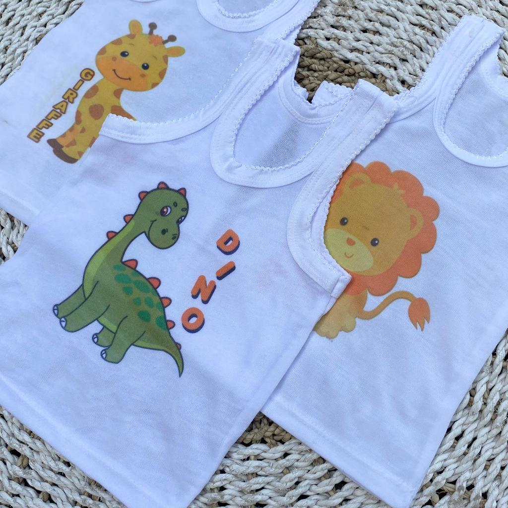 6/12 PCS Kaos Dalam Singlet Putih Motif Binatang DNW BABY