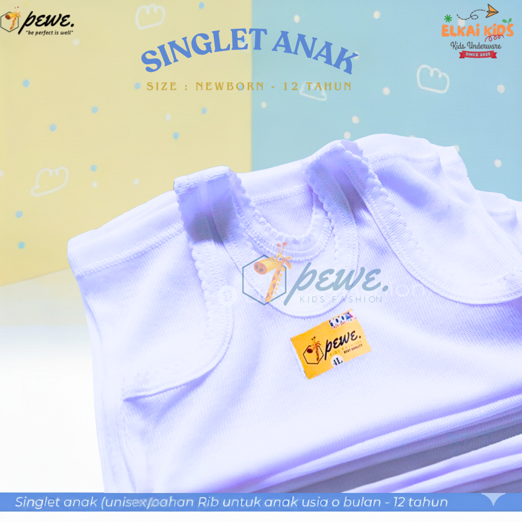 6 Pcs Kaos dalam Anak Perempuan & Laki Laki Putih Tanpa Bolong Usia 0-12 tahun/Singlet Anak Putih