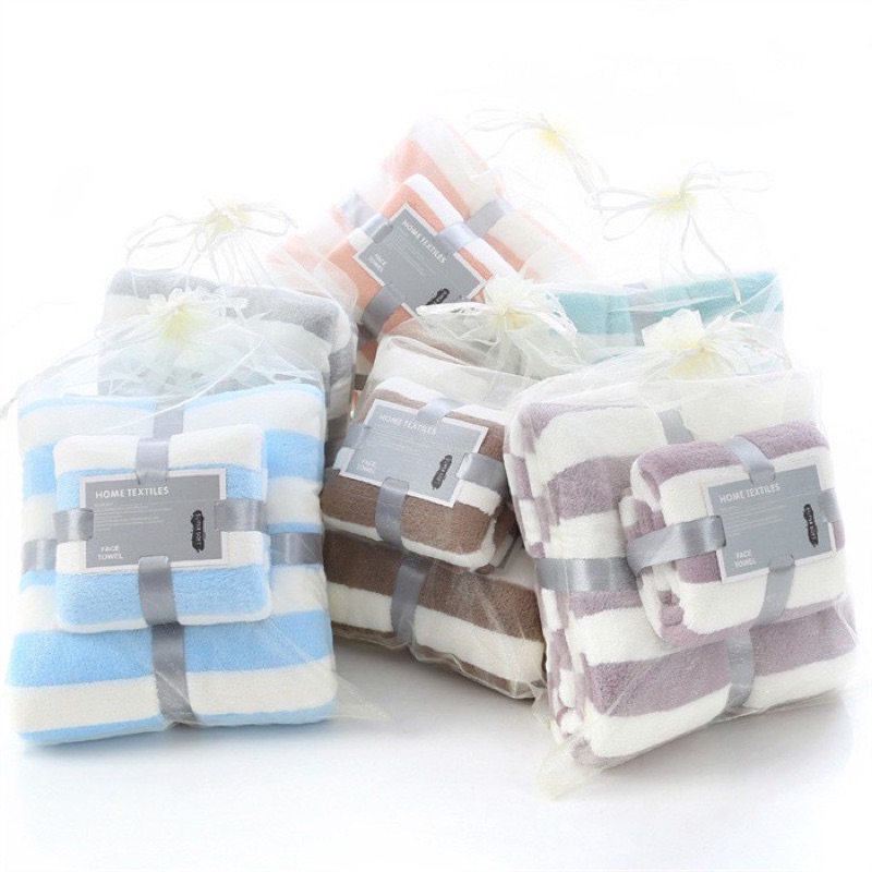 Handuk Mandi Motif Towel Set Isi 2 Pcs Handuk Bulu Karang Tebal Halus Lembut Nyaman