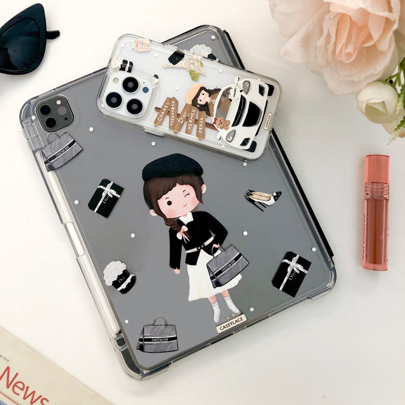 Detachable BLACK Casey In Paris For Ipad Pro 11inc M1 / M2 / M4 Air 4/5 air 6 M2 / Mini 6 / Gen 10 / gen 7/8/9