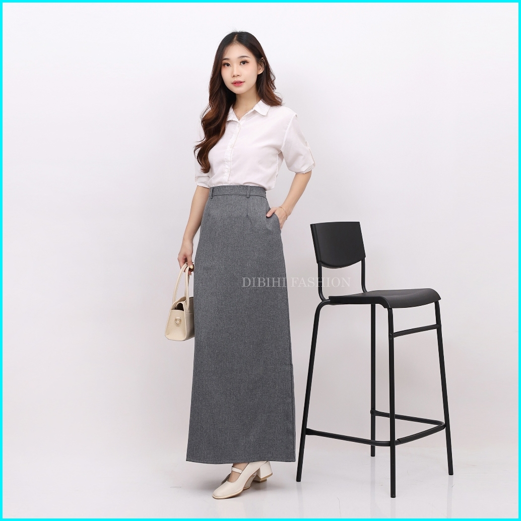 Dibihi Rok Kerja Model Line A Panjang Wanita Bahan Formal Stretch Import Premium